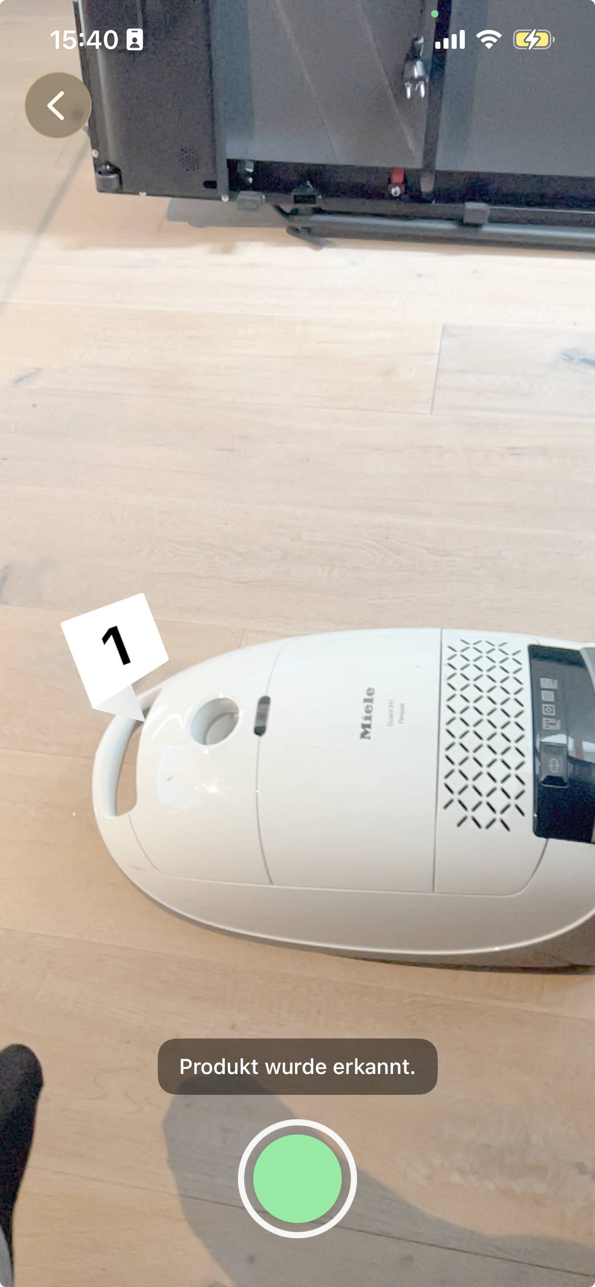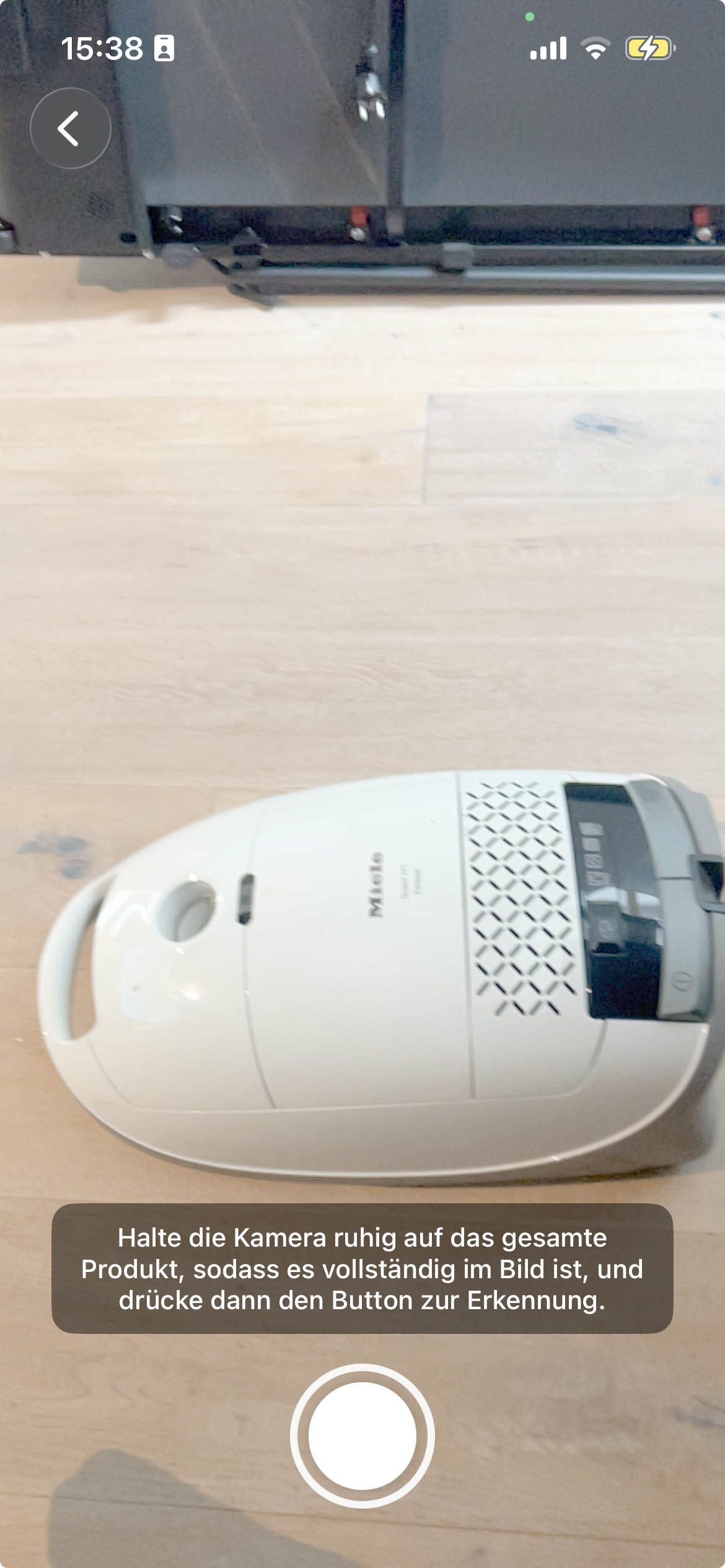 Achte darauf, dass das gesamte Produkt gut sichtbar ist, halte die Kamera ruhig und sorge für ausreichend Licht. Falls nötig, bewege dich leicht um das Produkt oder starte die Erkennung erneut.